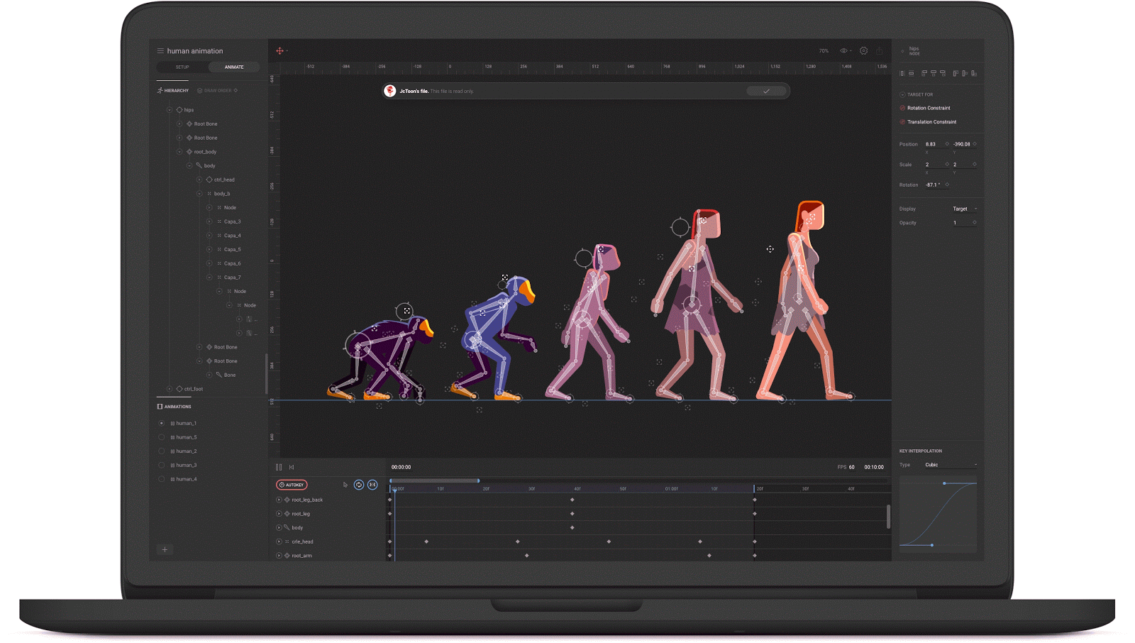 Animations built with Flare can be embedded into an existing Flutter app as a widget, allowing them to participate in the full compositor and be overlaid with other text, graphical layers or even UI widgets. Integrating in this way frees animations from the ‘black box’ limitations of other architectures, and allows ongoing collaboration between designers and developers right up to the completion of the app. Such tight integration between Flutter and Flare provides a uniquely compelling offering for digital designers and animators who want to create highly-polished mobile experiences.