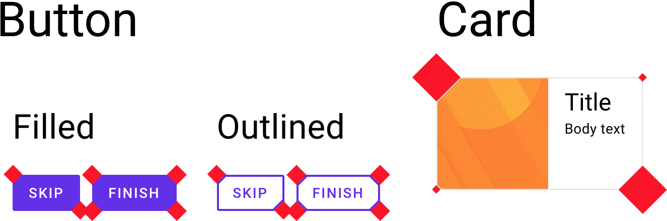 - Adding shape support for our components—giving developers the ability to customize the shape of buttons, cards, chips, sheets, etc.