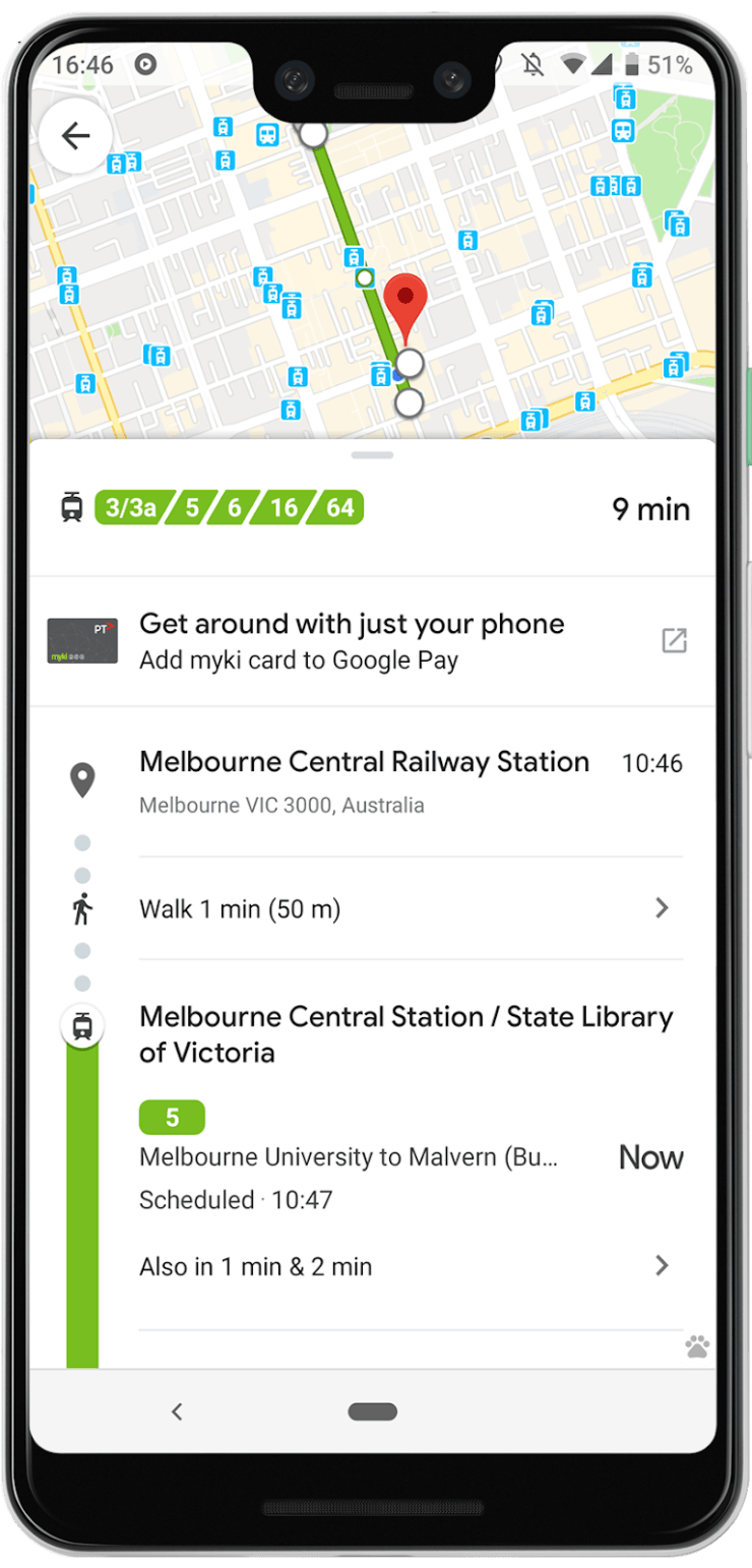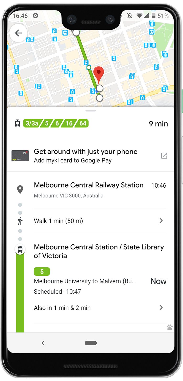 From left to right: new high priority notifications, integration of Myki card inside of Google Maps, new transit tickets and automatic Gmail import.