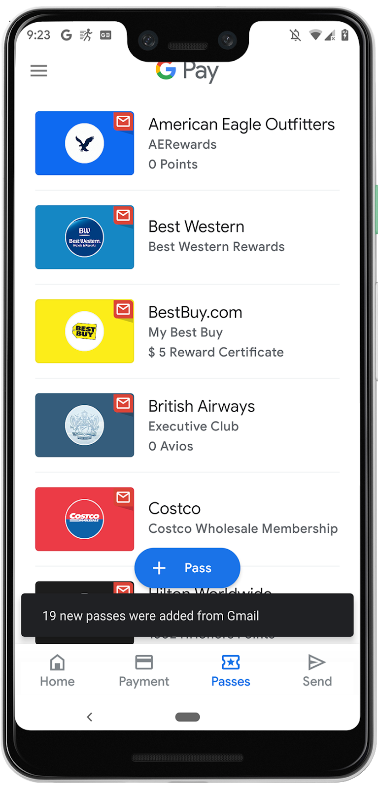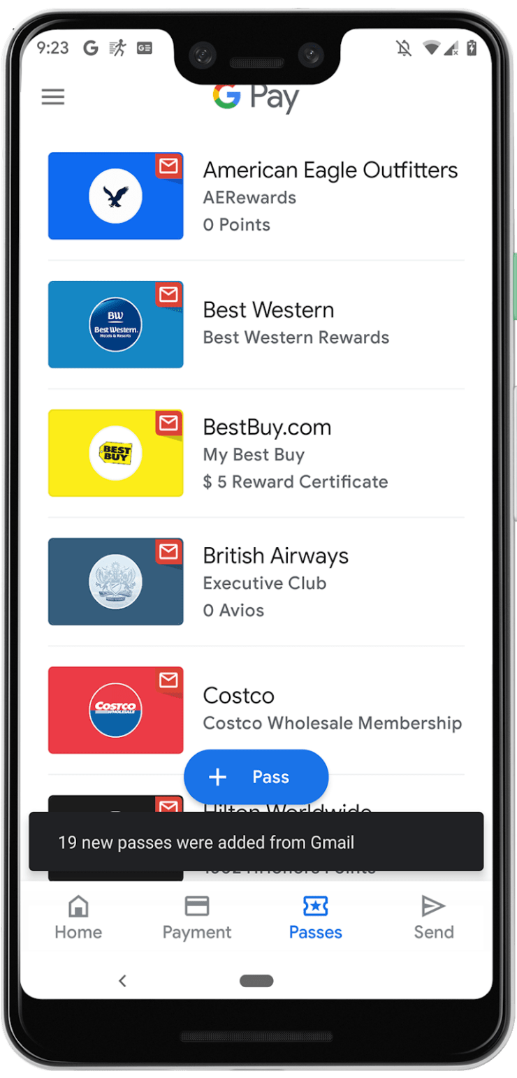 Now you can also give customers the opportunity to import your loyalty cards to Google Pay right from Gmail—just by adding some markup to your emails. When customers open the Google Pay app, they’ll be shown any loyalty cards from Gmail they haven’t added to Google Pay. With just a tap, they can add them all automatically so they can access them at any time. This feature is currently only available with loyalty programs, but we’ll be expanding to other types of passes in the future.