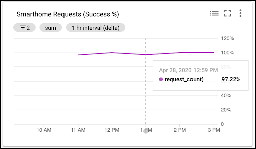 You can now access the smart home dashboard with pre-populated metrics charts for your Actions on the Analytics tab in the Actions Console, or through Cloud Monitoring. These metrics help you quantify the health and usage of your Action, and gain insight into how users engage with your Action. You can view: