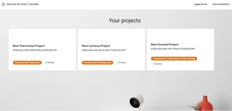 As part of that effort, we created the Device Access program to provide a way for partners to integrate directly with Nest devices. To support the Device Access program, we will soon launch the Device Access Console, a self-serve console that guides commercial developers through the different project phases: development, certification and pilot testing, and finally production.