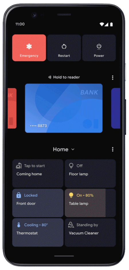 With the release of Android 11, coming out later this year, we are introducing a dedicated space for Smart Home controls that users can find quickly, and access any time. We’ve redesigned the power menu to make devices linked to Google Assistant just a button-press away.