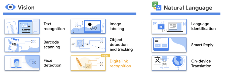 Digital Ink Recognition is different from the existing Vision and Natural Language APIs in ML Kit, as it takes neither text nor images as input. Instead, it looks at the user’s strokes on the screen and recognizes what they are writing or drawing. This is the same technology that powers handwriting recognition in Gboard – Google’s own keyboard app, which we described in detail in a 2019 blog post. It’s also the same underlying technology used in the Quick, Draw! and AutoDraw experiments.