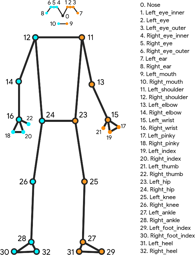 Skeleton image detailing all 33 landmark points