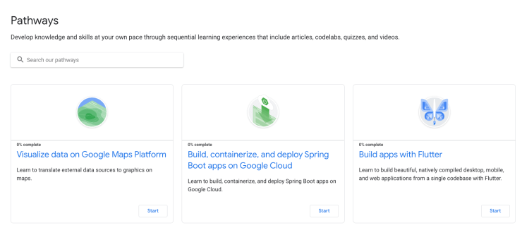 Pathways are a new way to learn skills using all of the educational activities Google has developed for that skill. They organize selected videos, articles, blog posts, and Codelabs, together in one sequential learning experience so you can develop knowledge and skills at your own pace.